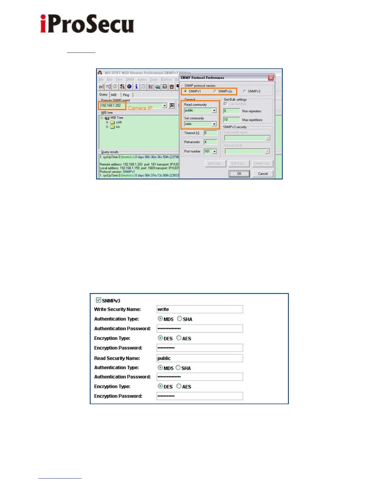 Open the MIB Browser. Key-in camera IP address(192.168.1.202), select