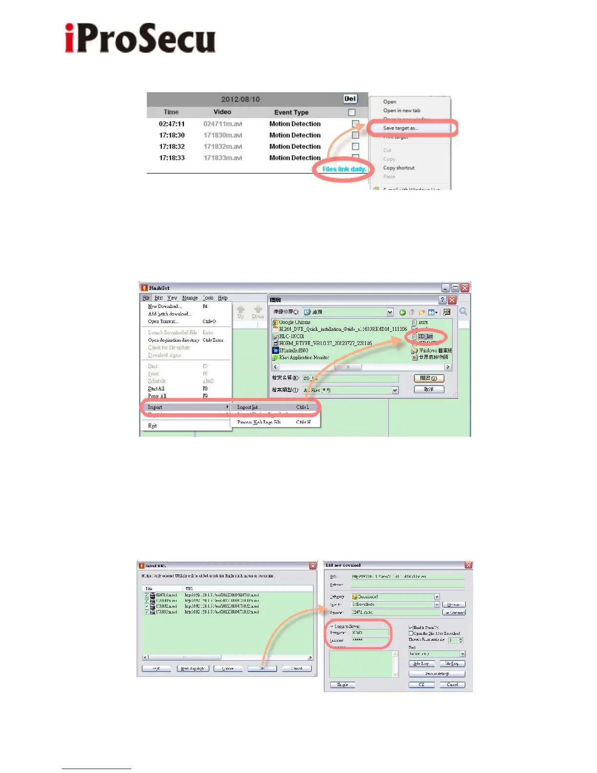 (ii) Open FlashGet, select "File" → "Import" → "Import list", and find the link list
