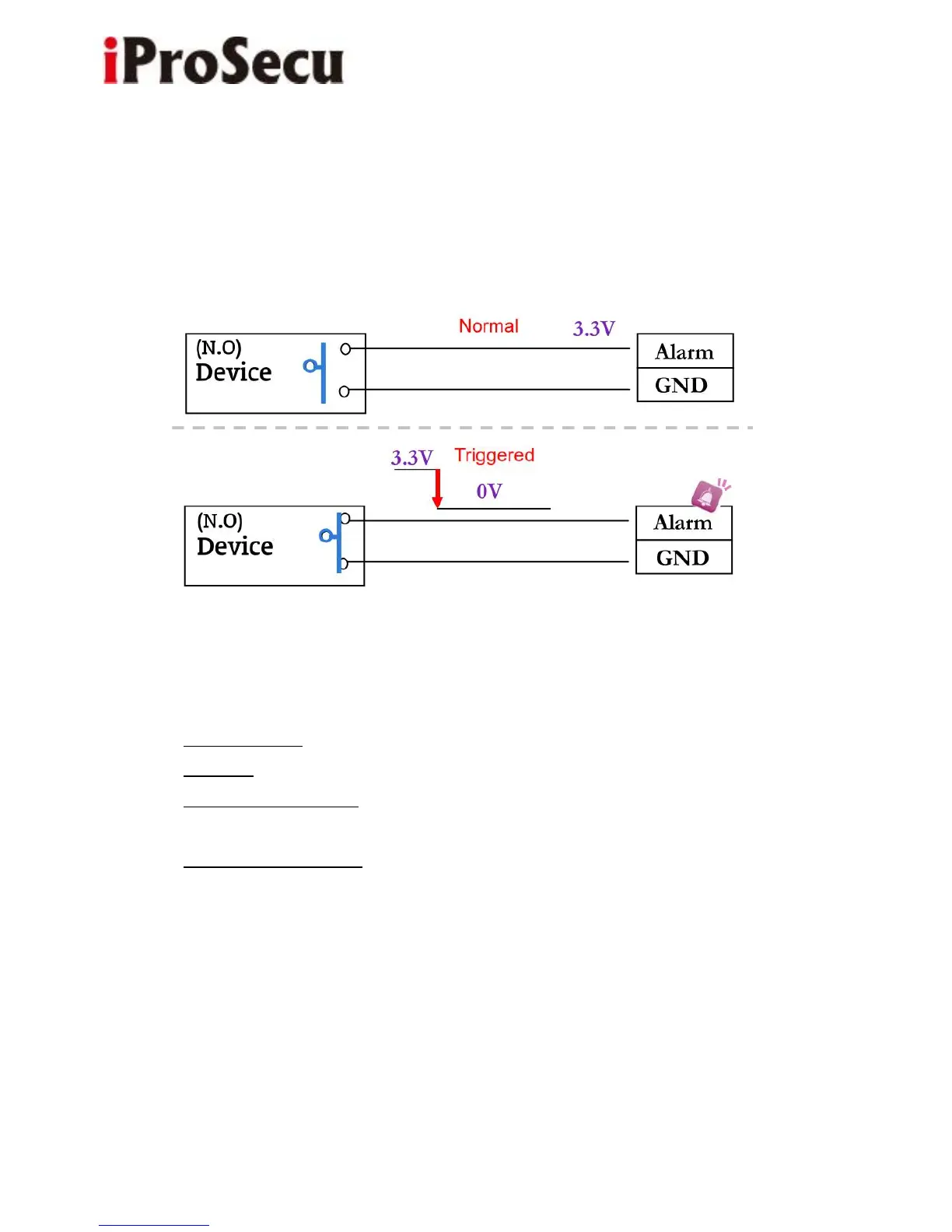 • Alarm In: Max. 50mA, DC 3.3V