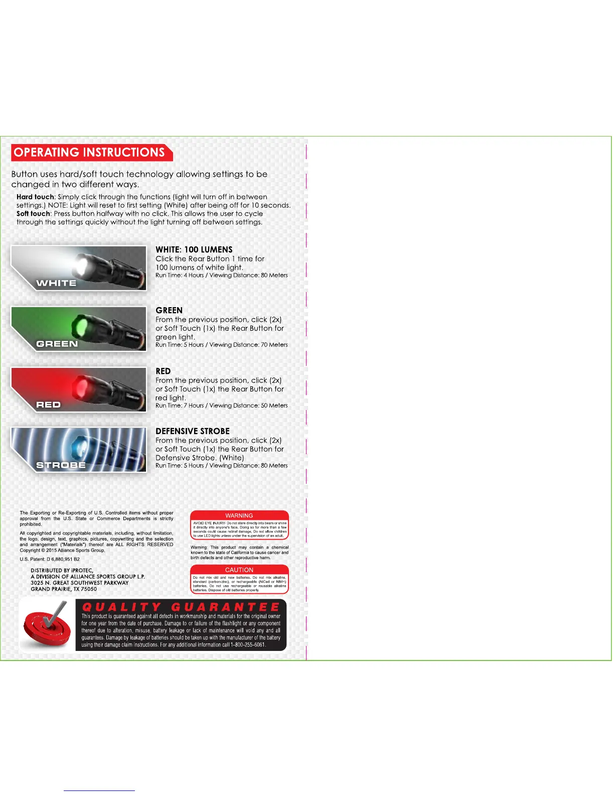 iProtec CHAMELEON - OPERATING INSTRUCTIONS; Touch Control Methods; White Light Operation; Green Light Operation