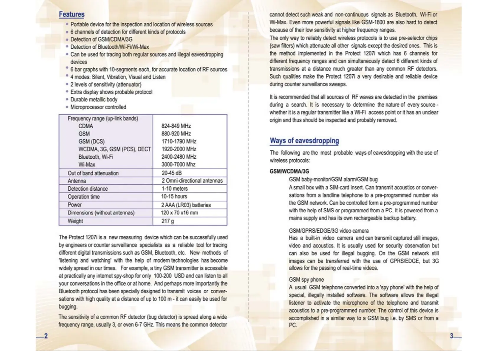 iProTech Protect 1207i - Product Features; Understanding Eavesdropping Methods; GSM, WCDMA, 3 G Eavesdropping