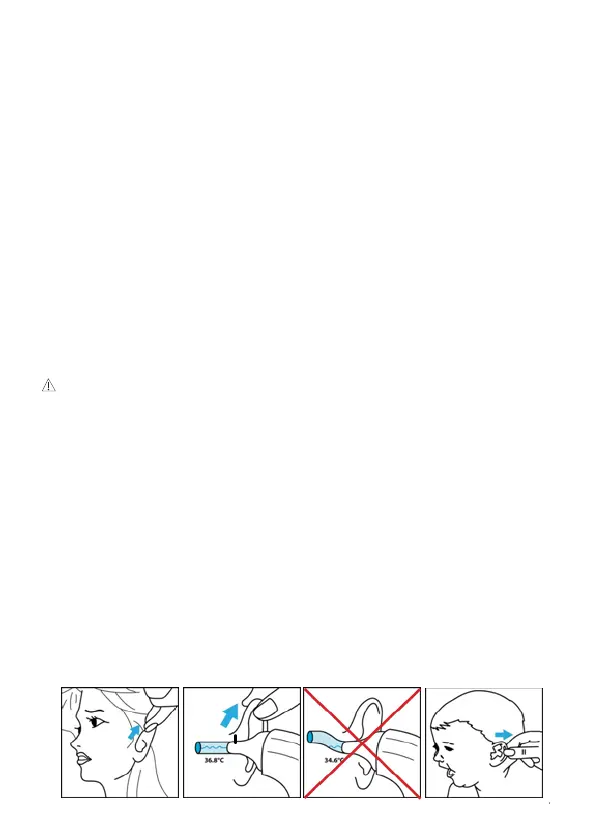 • Ensure that the ears are clean. Earwax inuences the accuracy of the measurement.
