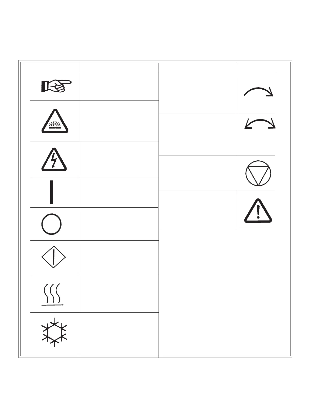 The following symbols are used in this manual and/or on the machine. The numbers between ()