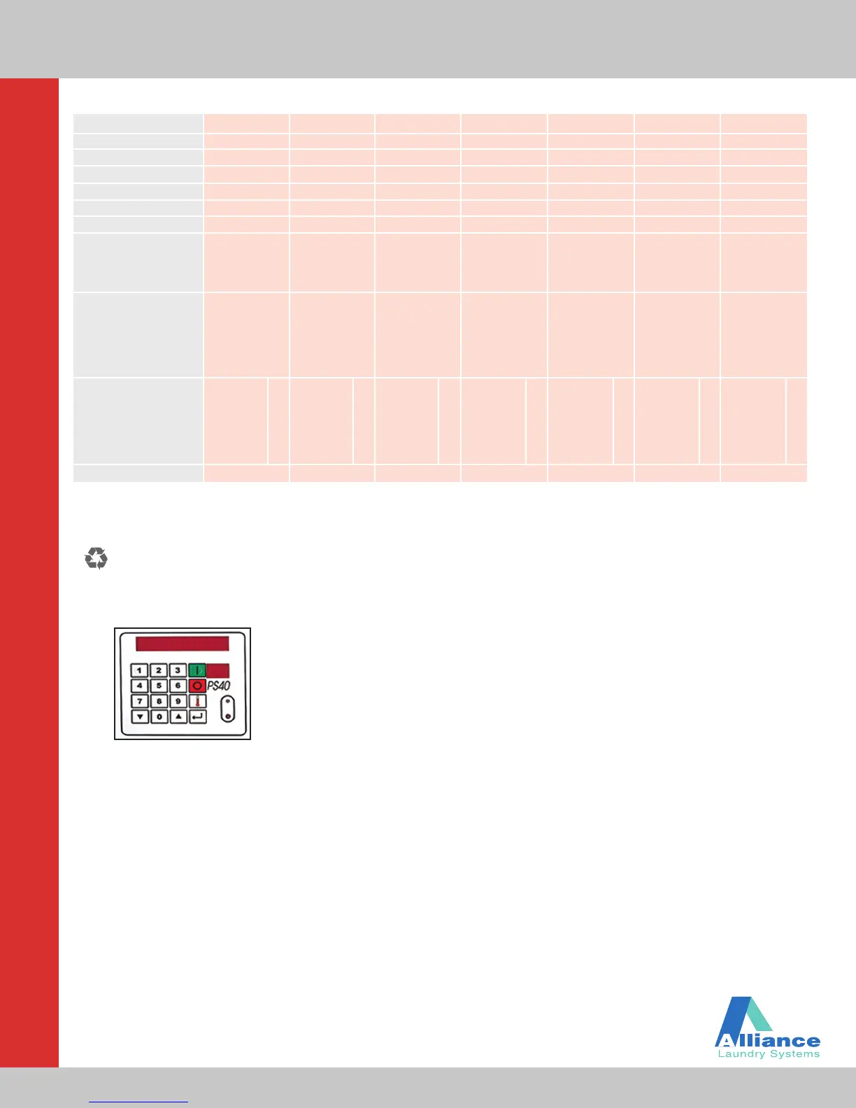 Due to continuous improvements, design and specifications subject to change without notice. The quality management systems at all Alliance Laundry Systems manufacturing facilities