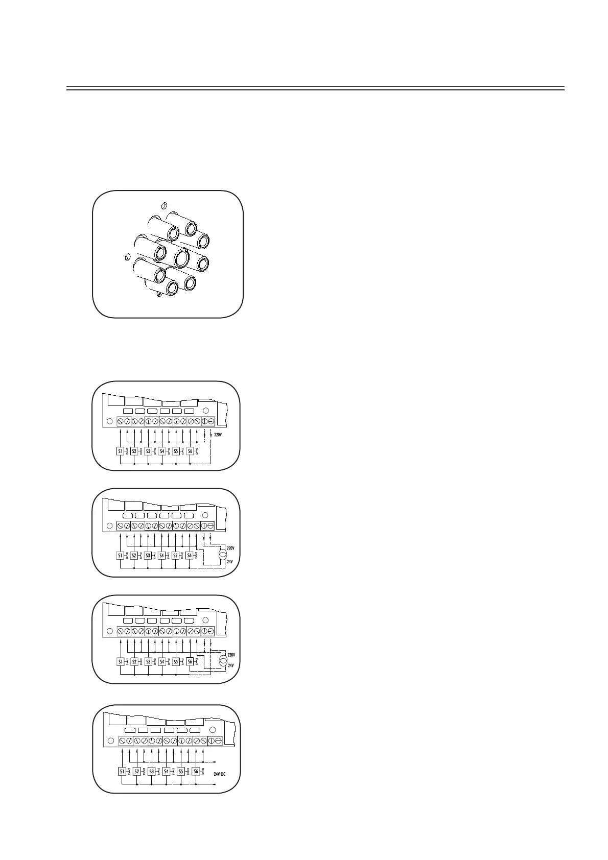 Example: 5 pumps 220V ~ and 1 pump 24V ~.