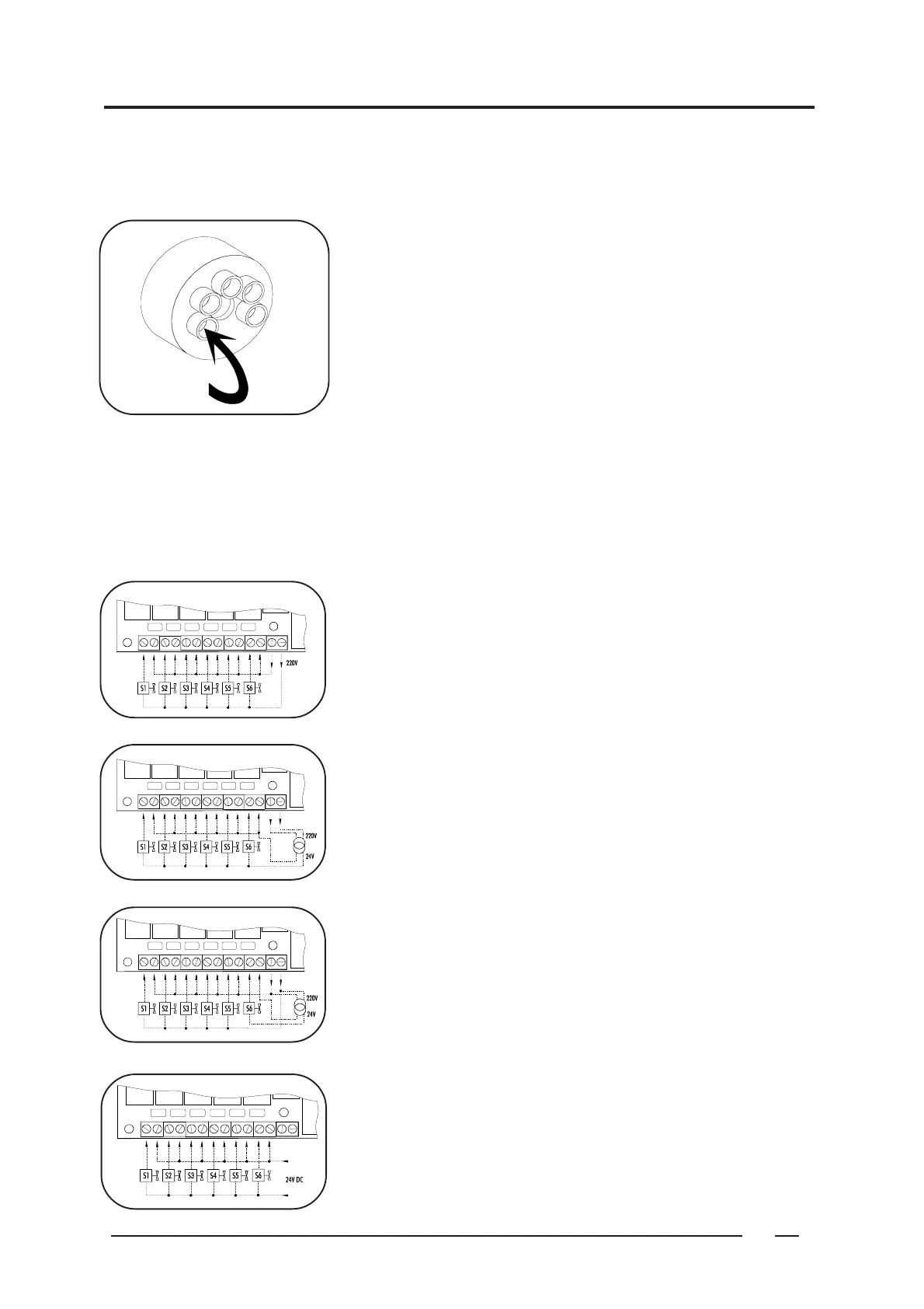 Example: 5 pumps 220V ~ and 1 pump 24V ~.