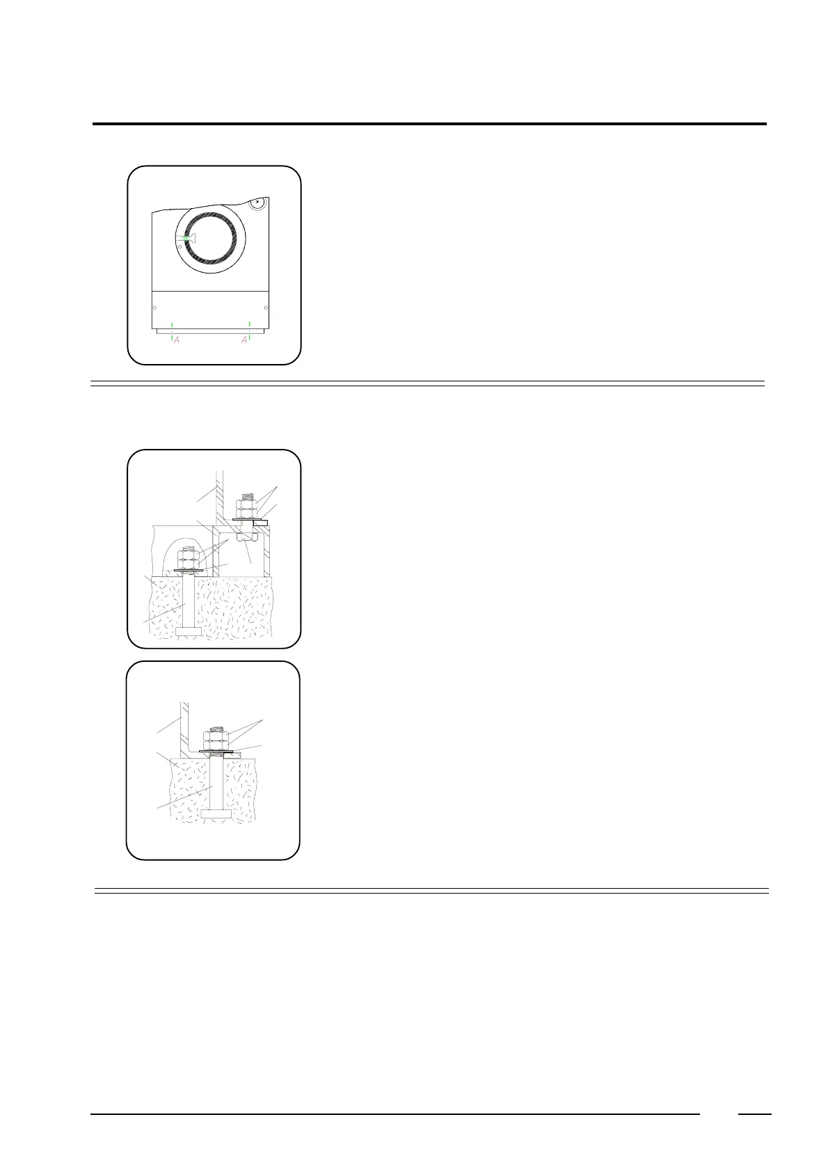 solid ground). The anchoring is to be done on the provided places (A) in the base.
