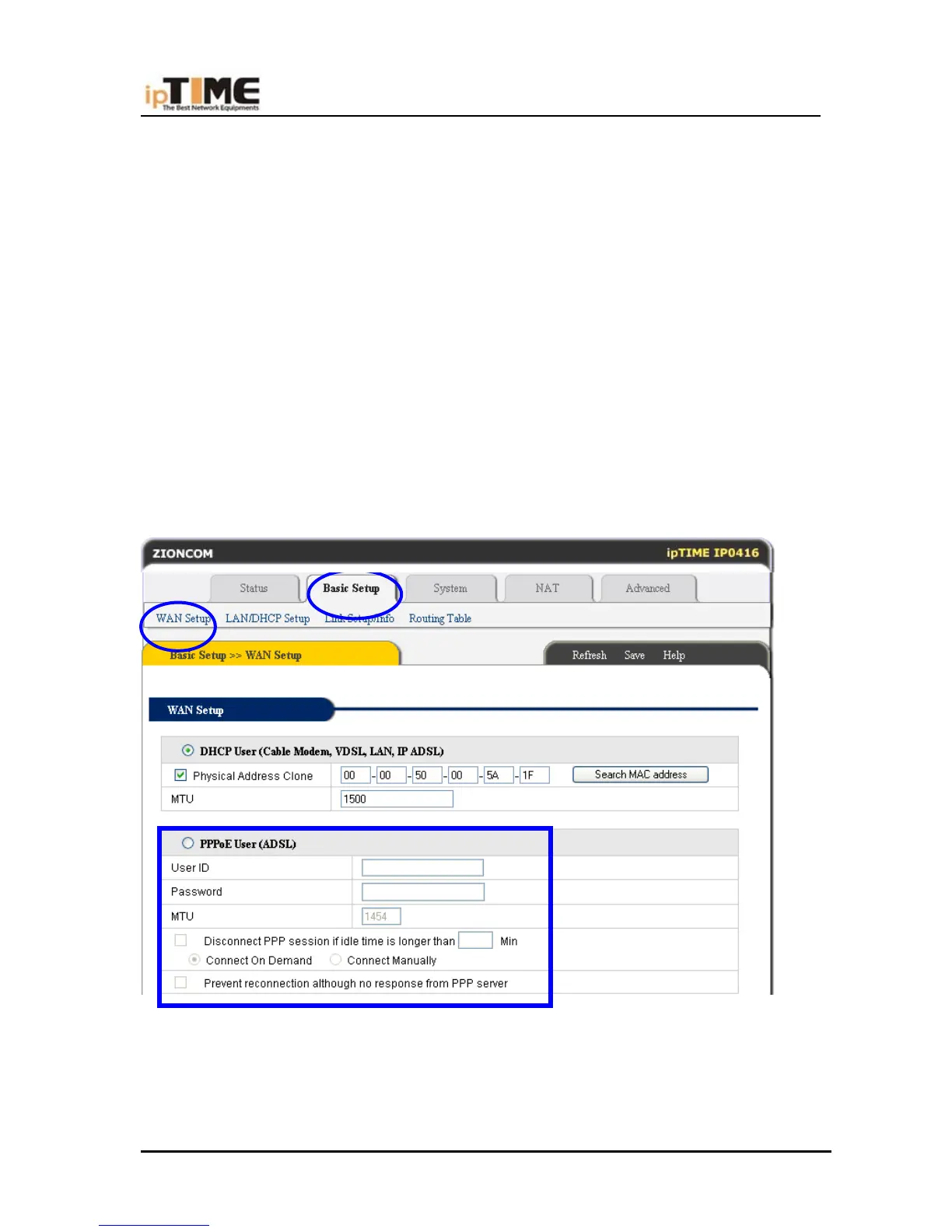 Click “Basic setup “-> “WAN setup”, as follows: