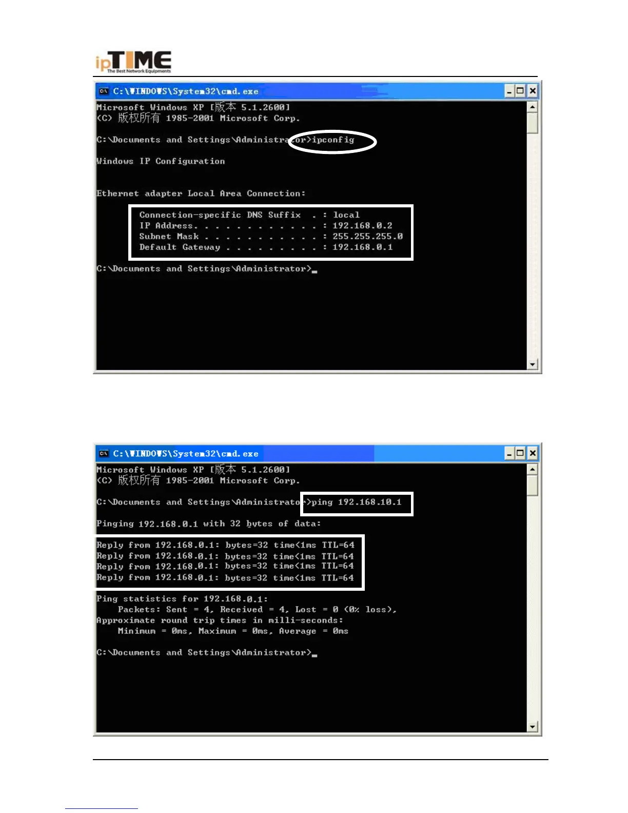 (12) Input “ping 192.168.0.1”, then “Enter”.