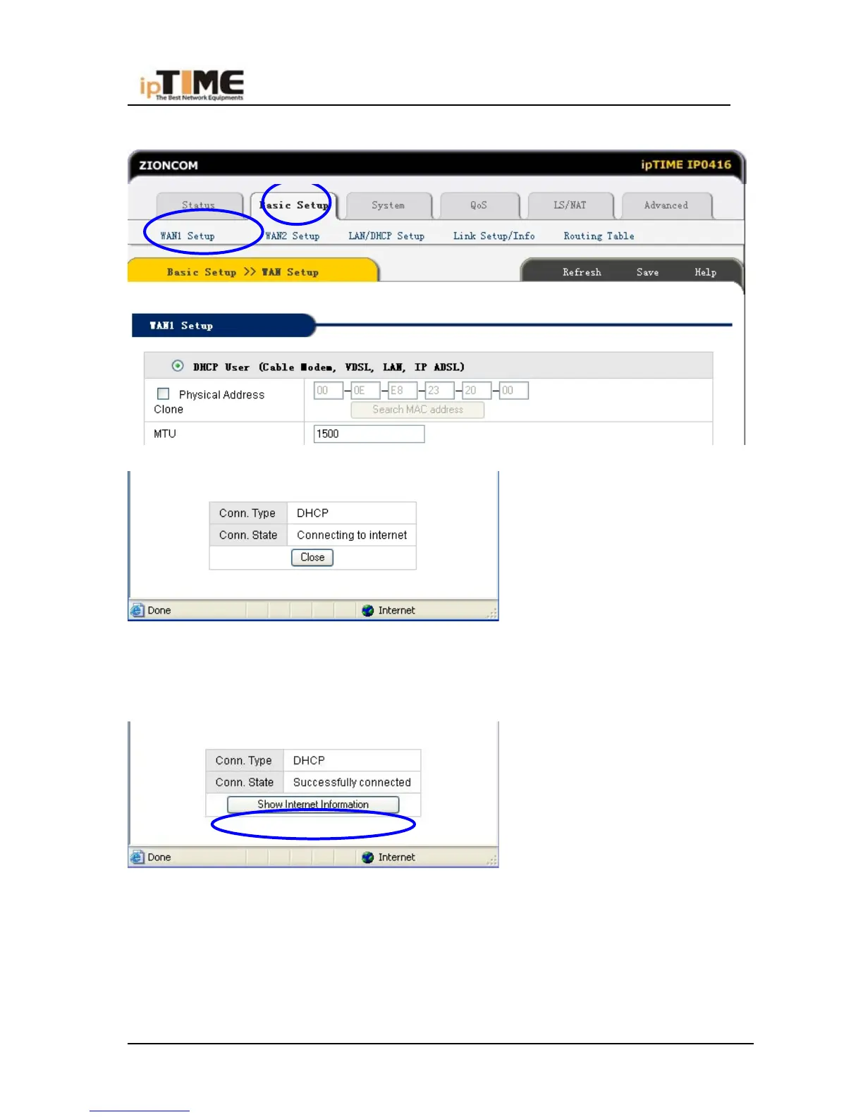 (7) If connection status keeps to be “Connecting to Internet”, please do the