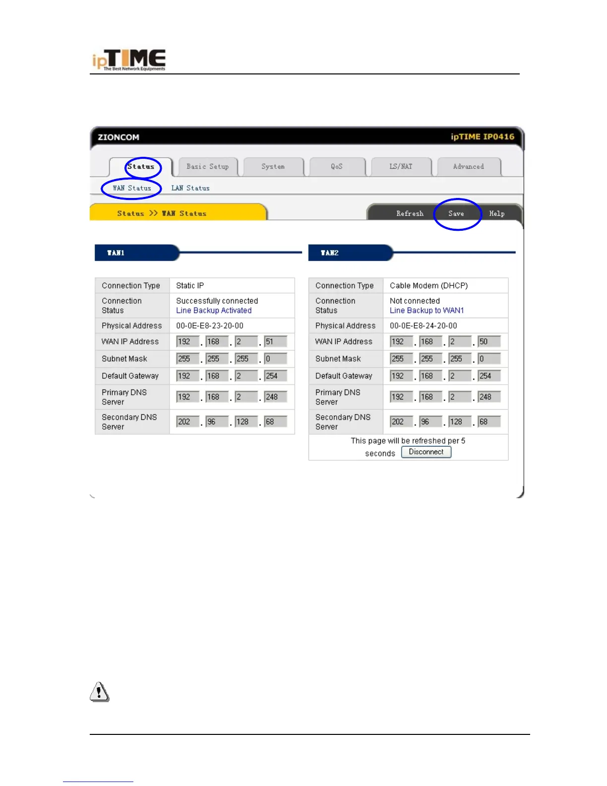 *Confirm WAN IP Address, Subnet mask, Default Gateway, Primary DNS
