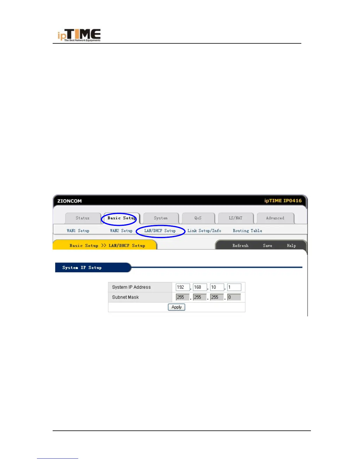 Click Basic Setup-LAN/DHCP Setup ,Please refer to following Snap