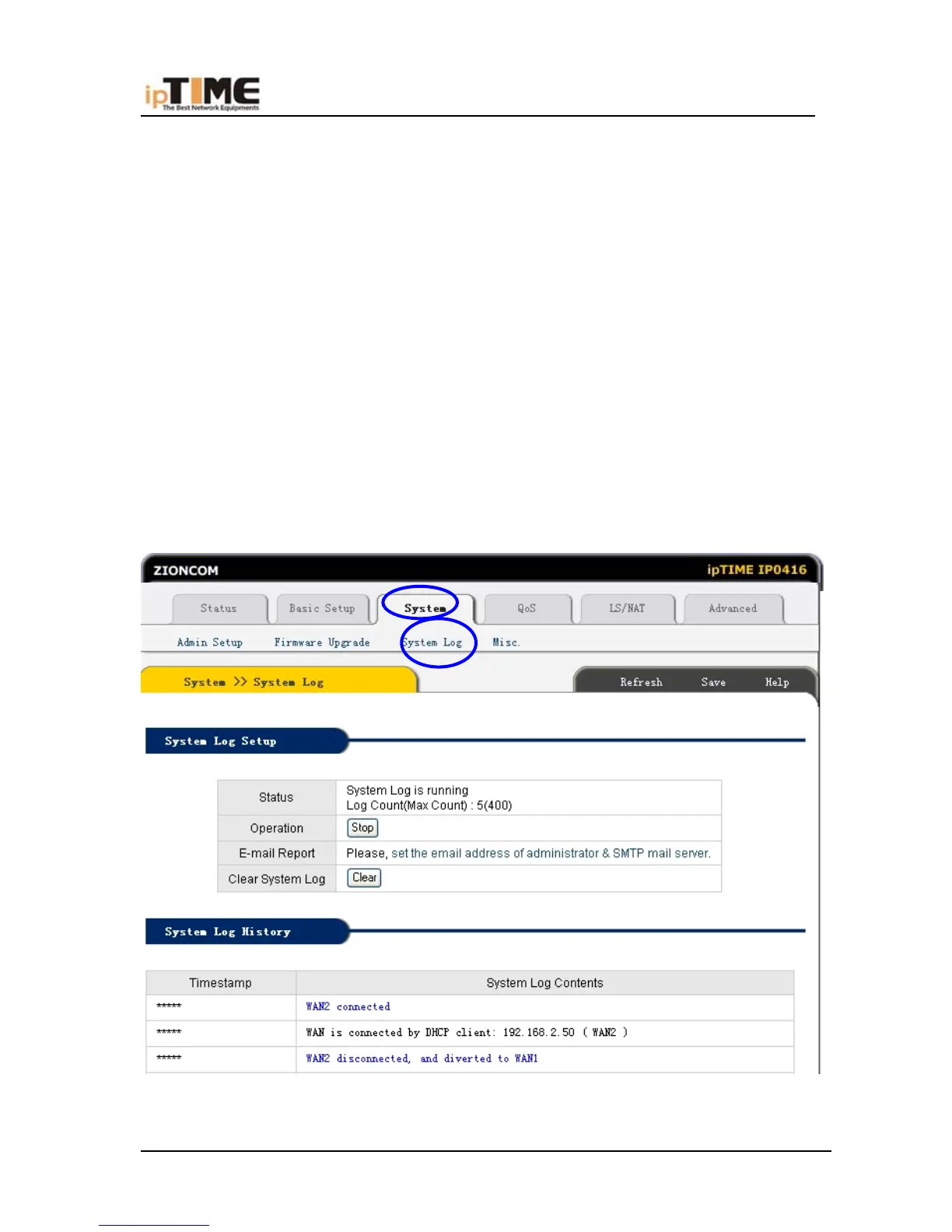 ipTime IP0416 - System Log Management