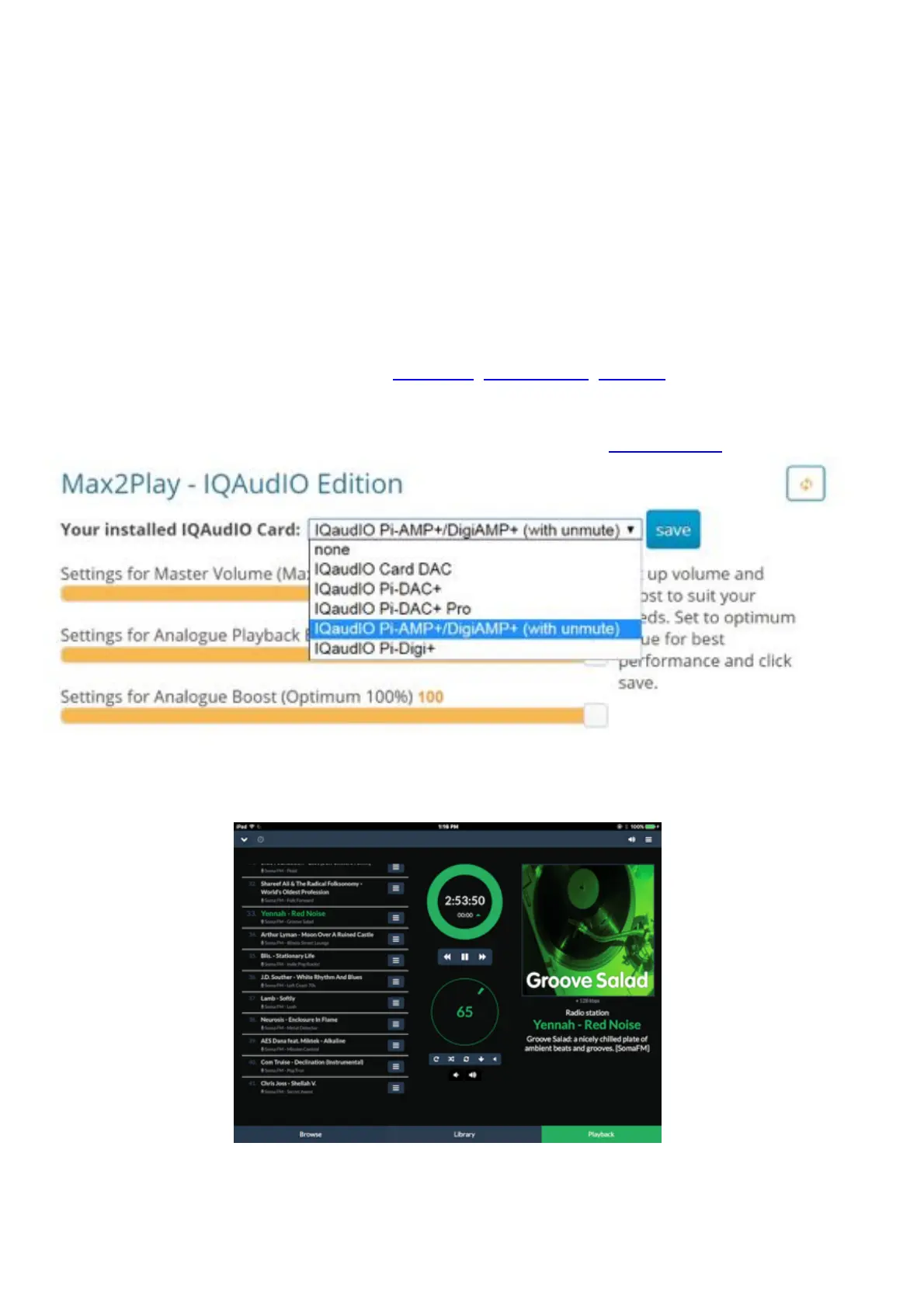 through a web page. Applications such as Max2Play, MoodeAudio, Volumio and RuneAudio work this