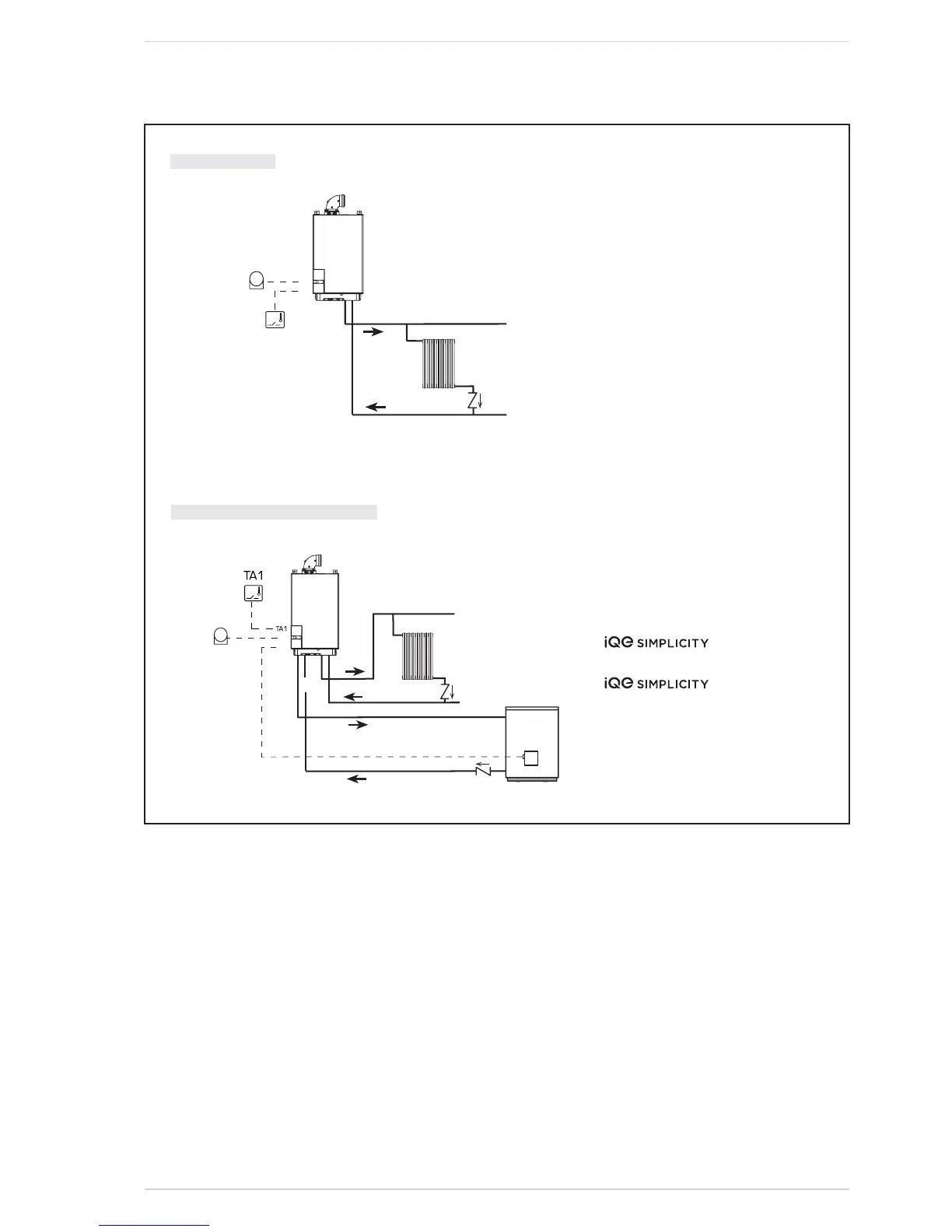 iQe SIMPLICITY 25 - System with a Direct Zone and Room Thermostat and External Sensor; System with Remote Cylinder