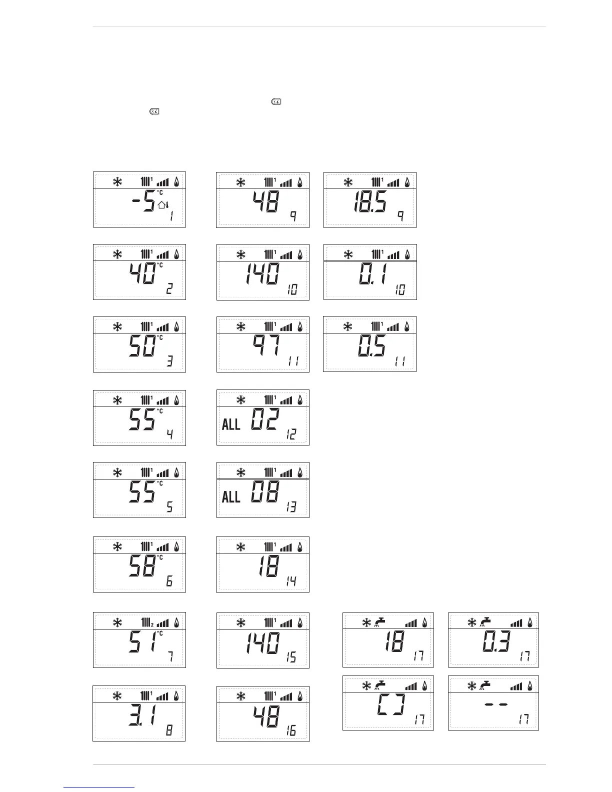 11. Visualizzazione numero di accensioni del bruciatore x 1.000 (es. 97.000 e
