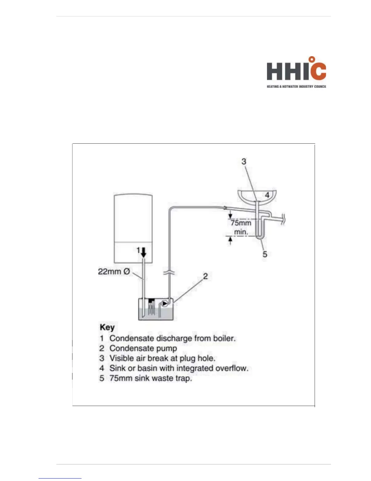 Figure 3 Connection of a condensate pump - typical method (NB manufacturer’s detailed