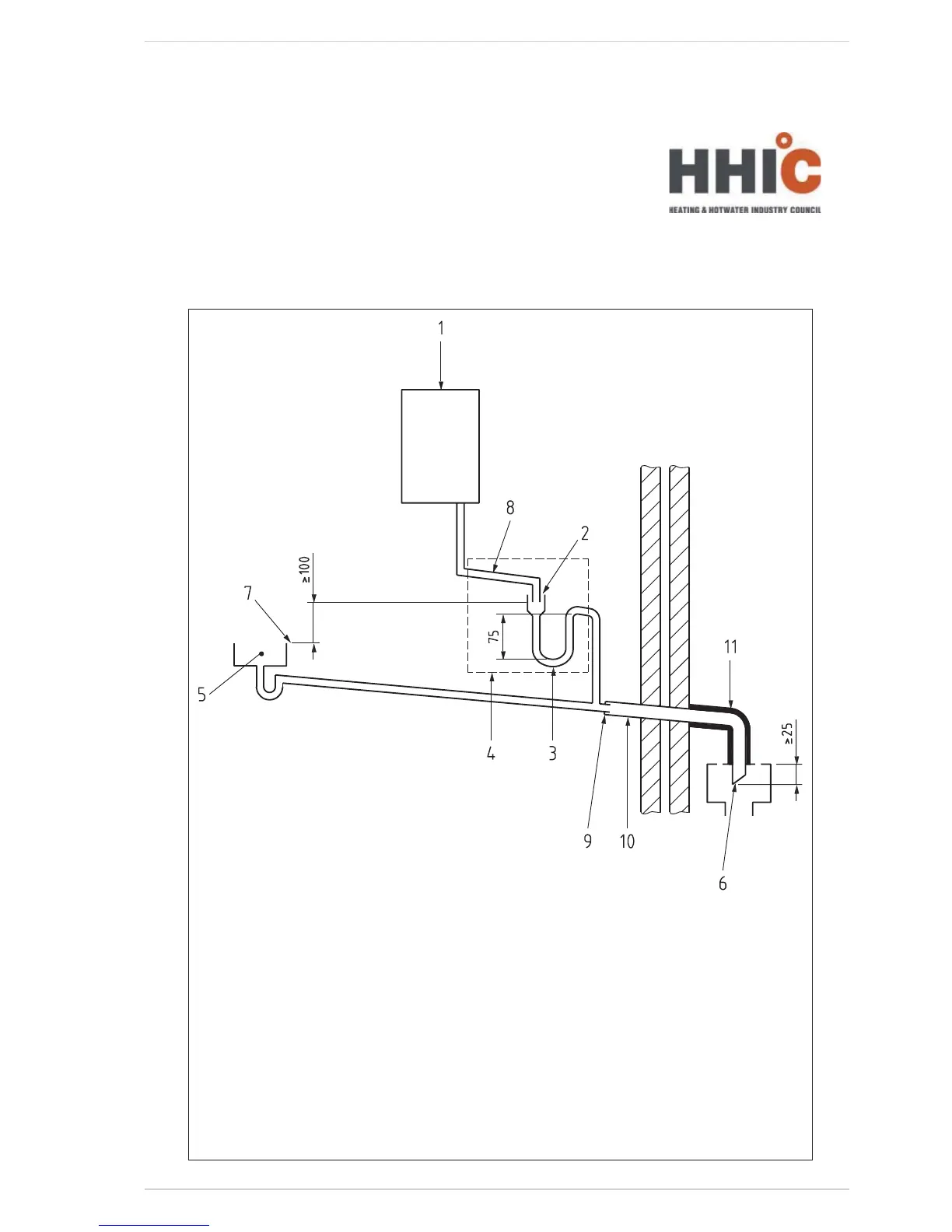 seal of 75 mm incorporated into the boiler. In this case the 100 mm is measured to the