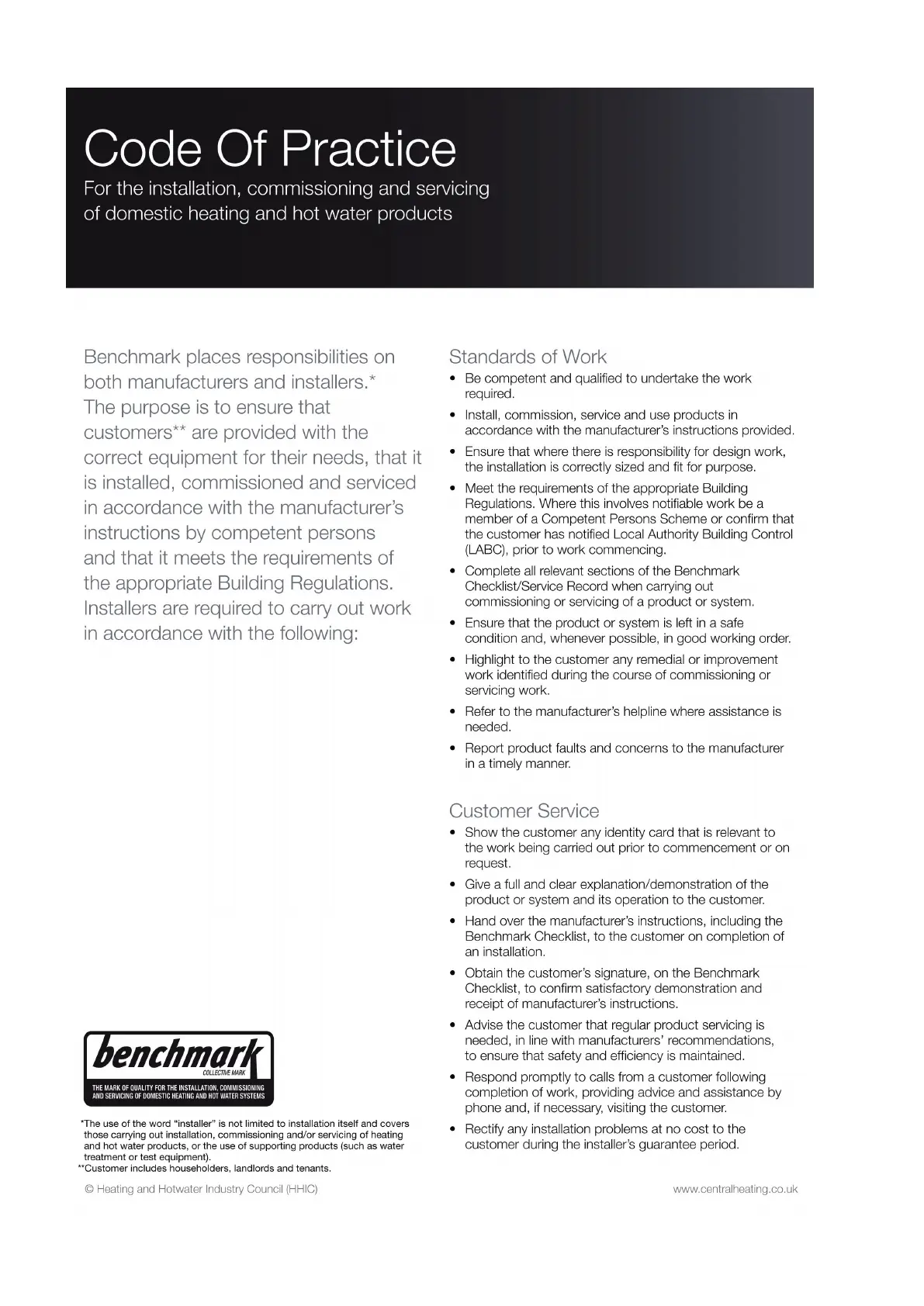 iQe SIMPLICITY Series - Code of Practice for Installation and Servicing; Standards of Work; Customer Service