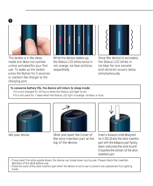 iQOS S-MONO-21 - Initial Setup and Device Activation; Inserting Tobacco Sticks
