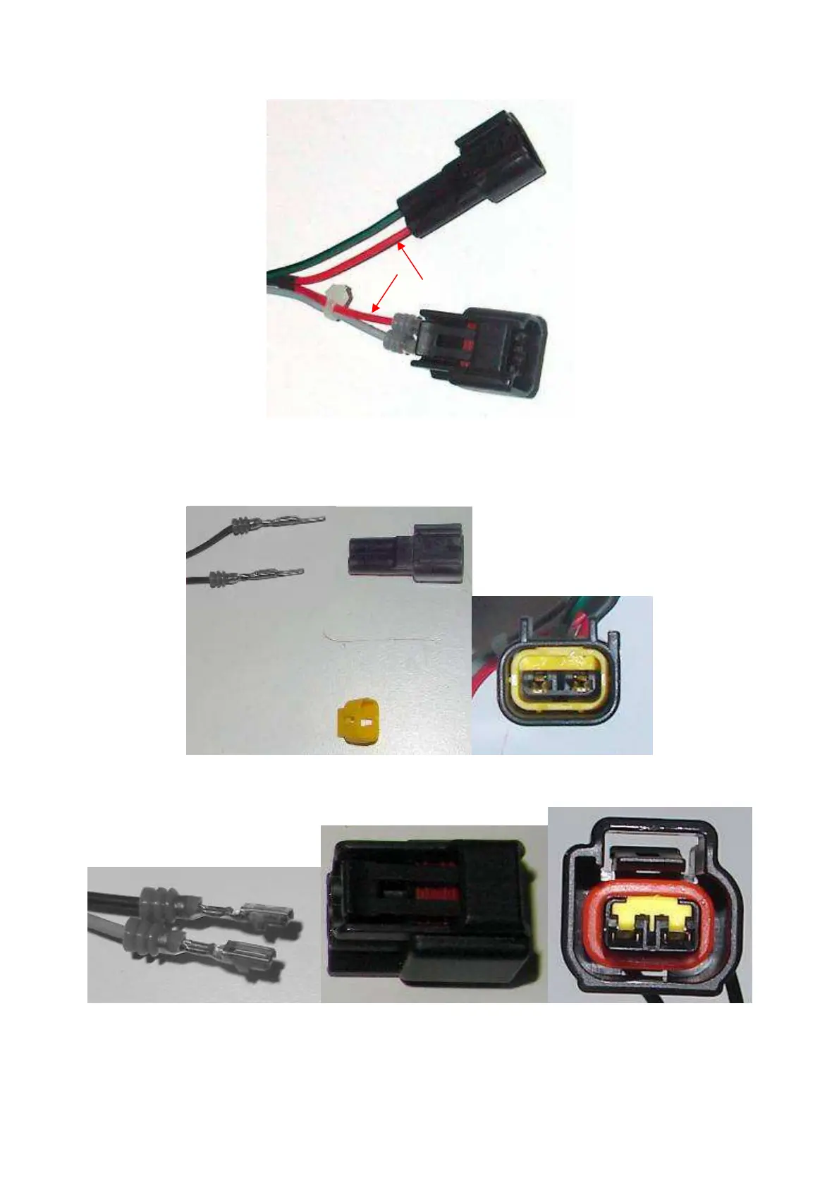 Insert female pins on the big connector. Close it with the yellow plastic key.