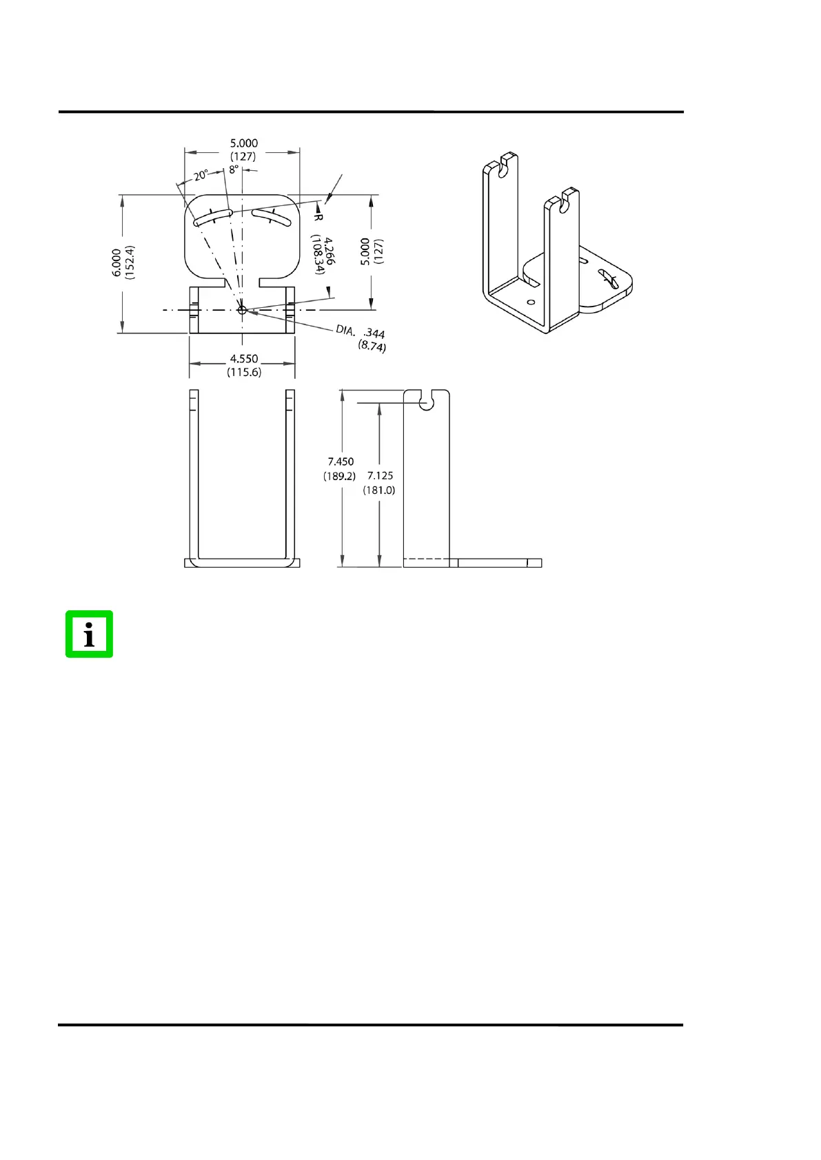 Use 5/16 inch or M8 mounting Bolts (3 Places).