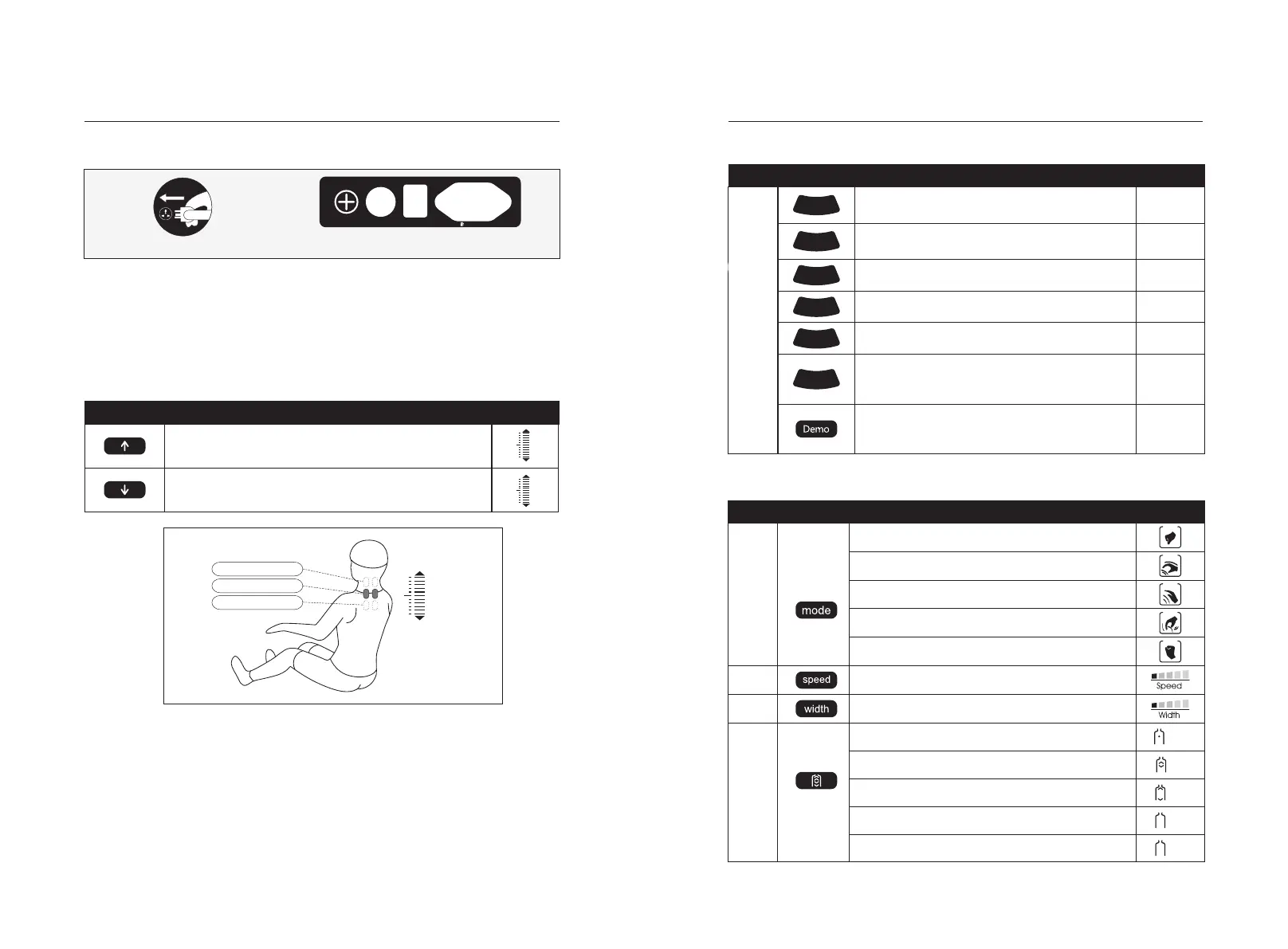 press any of the six automatic massage function keys (comfort, ease, full body, neck