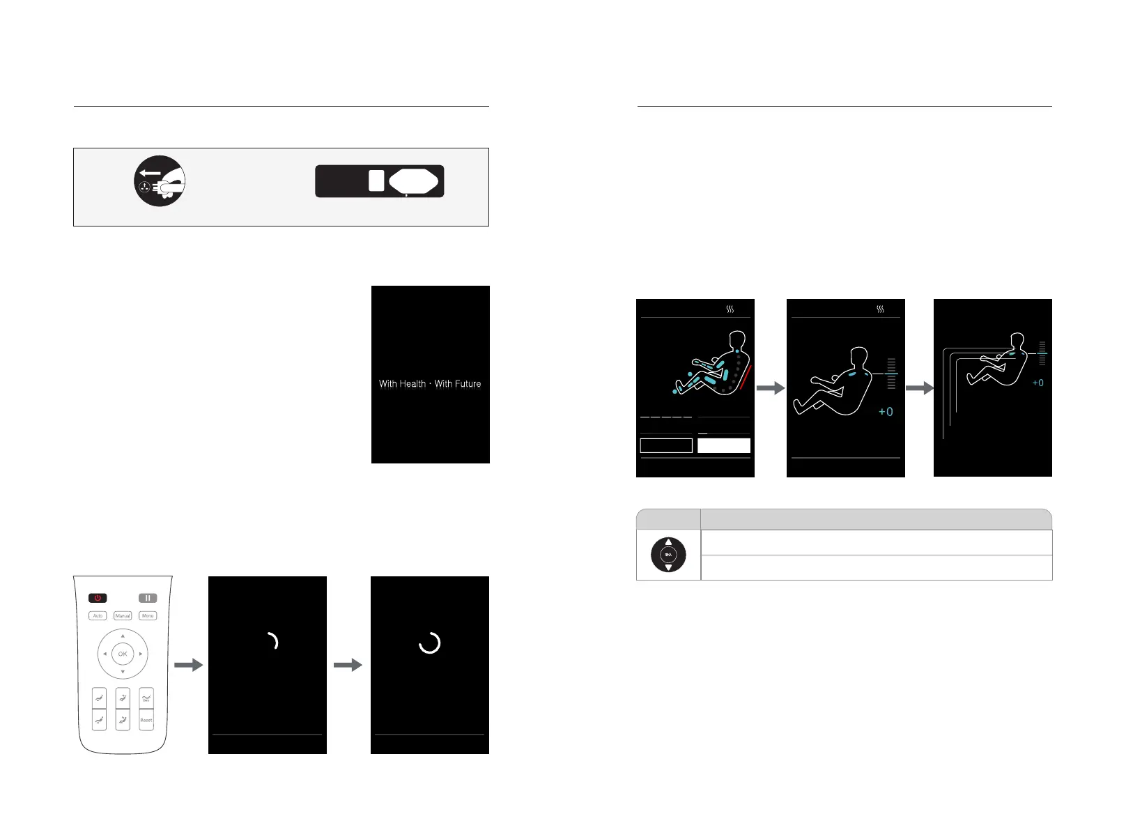 ·Press “Power” button to start massage, enter the boot screen, backrest maintains