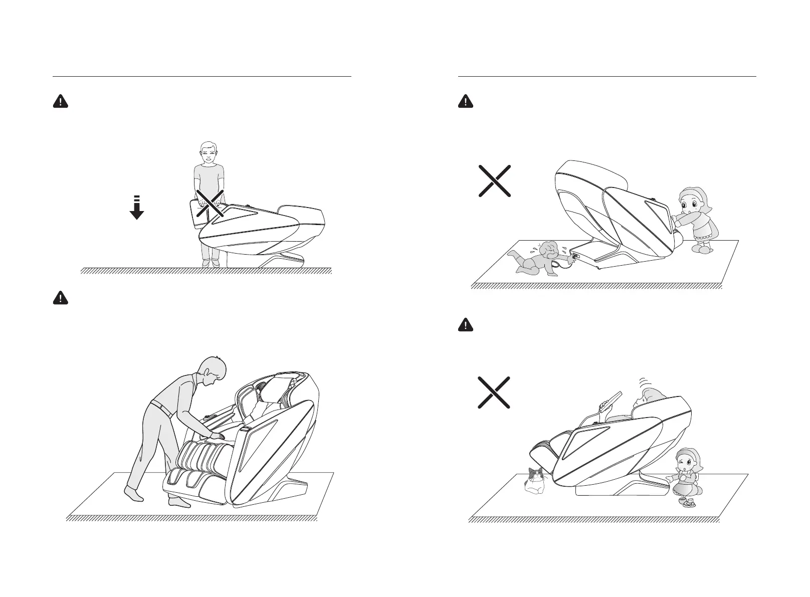 any child or pet staying or playing under the bottom of the legrest and backrest, in