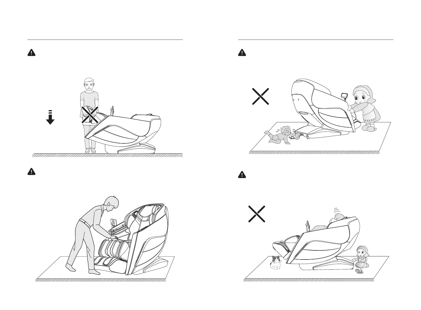 any child or pet staying or playing under the bottom of the legrest and backrest, in