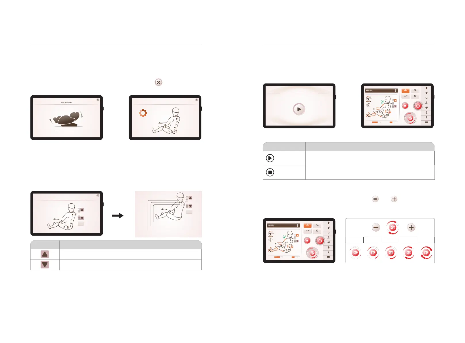 all massage functions; Press the “Pause” button again to continue the massage. If