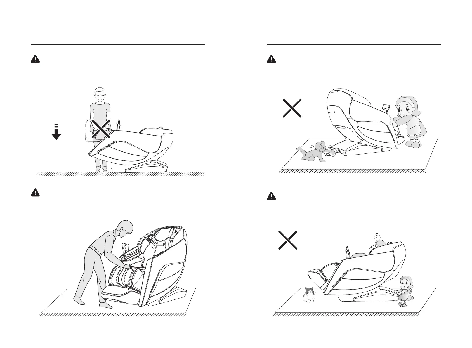 any child or pet staying or playing under the bottom of the legrest and backrest, in