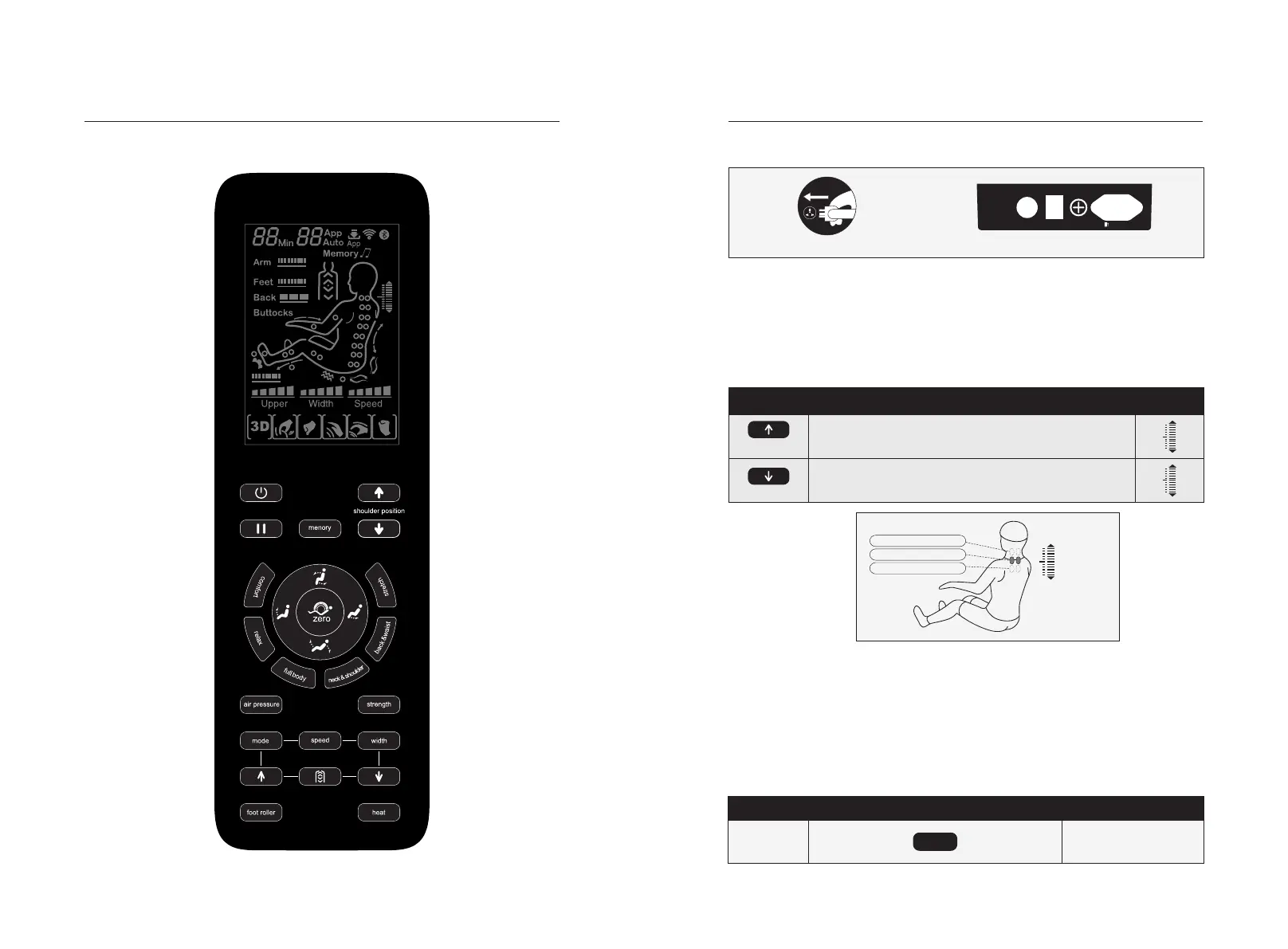 ·Memory function massage: press memory it will revert to the previous memory