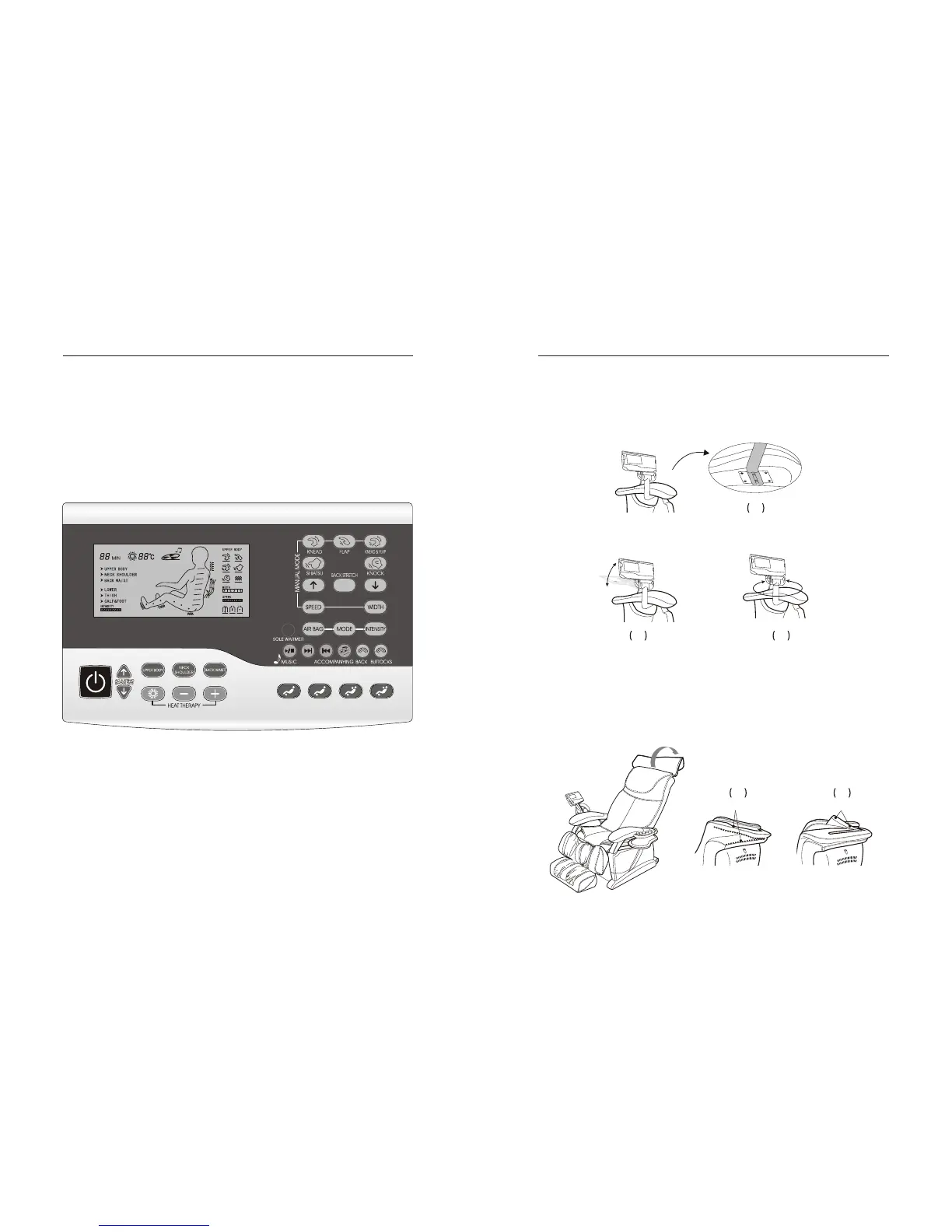 (1)Install the controller shelf on the massage chair.(2)The controller can