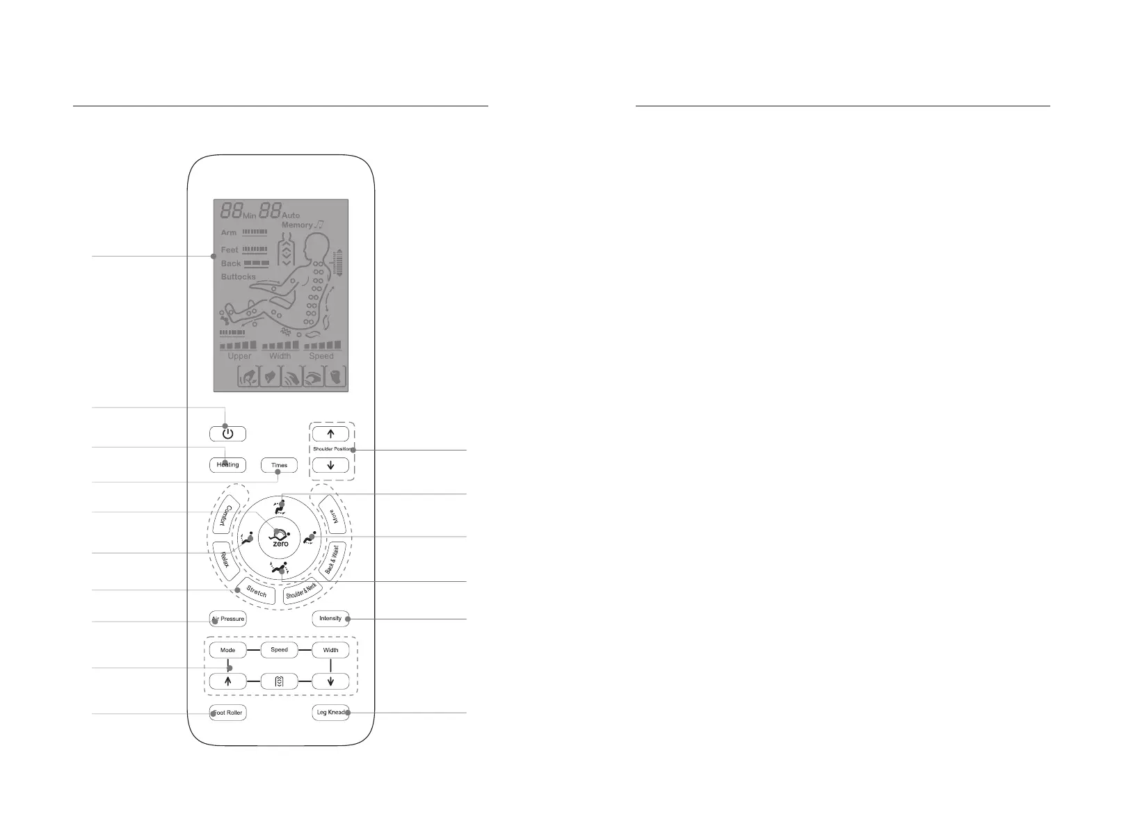 ·Turn on/off air pressure massage function. (Please refer to Page 12 of this manual