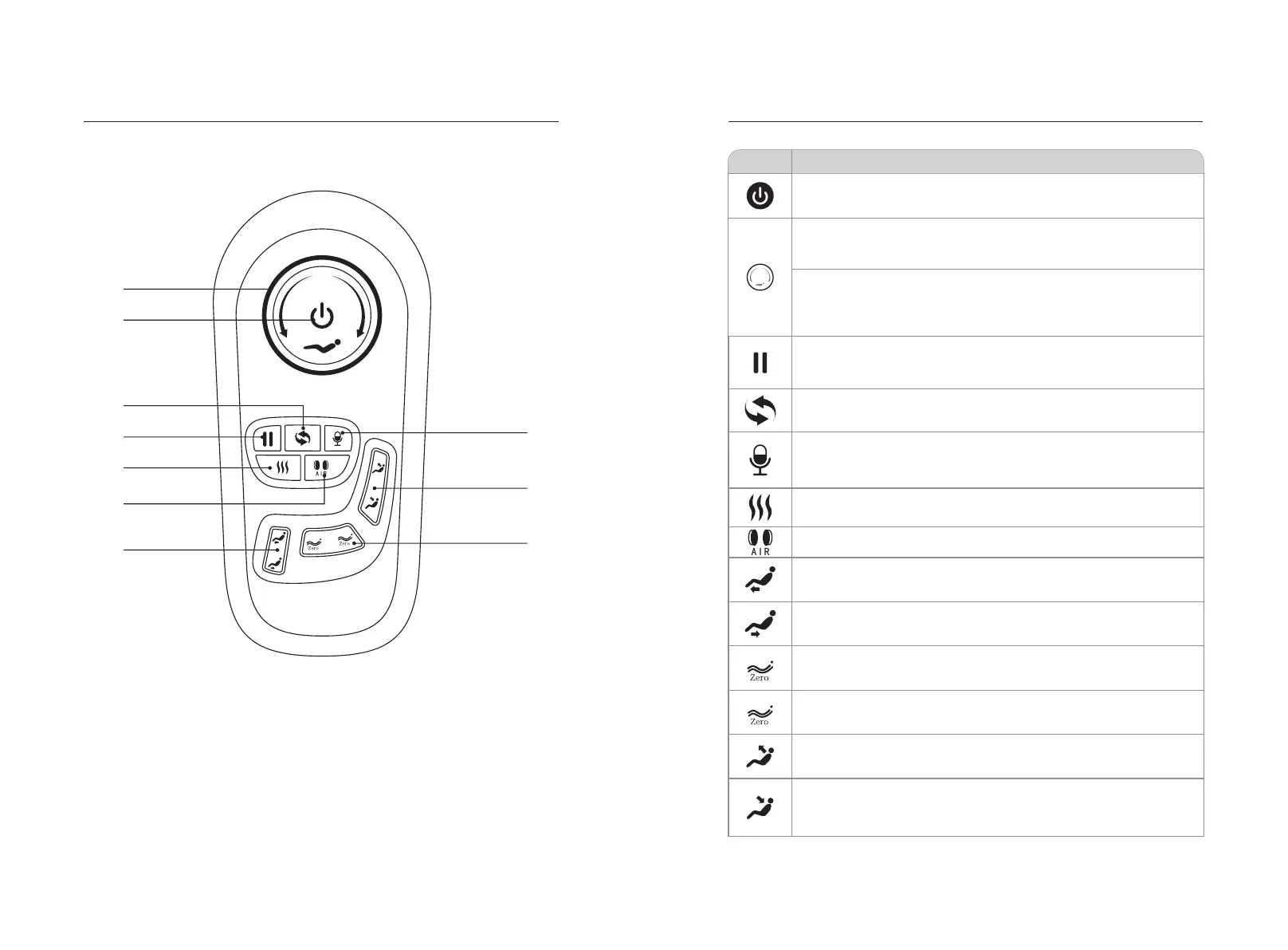 10.Zero-gravity key: Press it to adjust the massage chair to the angle for zero gravity.