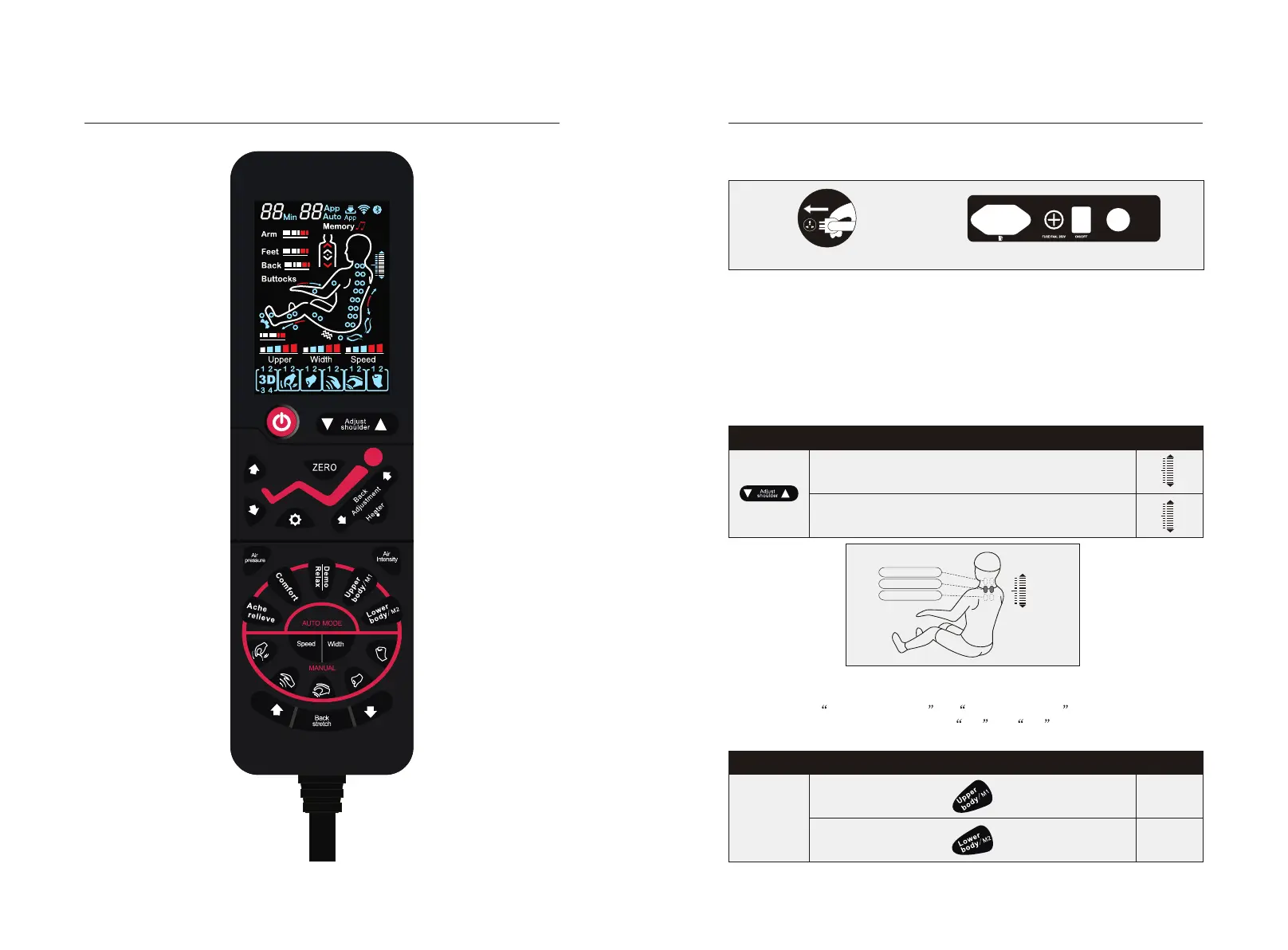 Press button Upper body / M1 or Lower body /M2 for 3 seconds, then