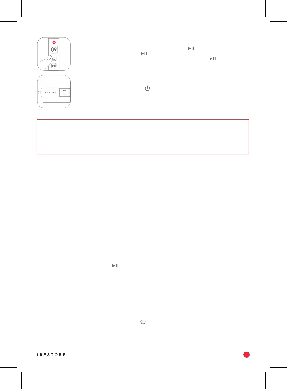 • My iRestore is powered on but pressing (start/pause) does not activate the device.