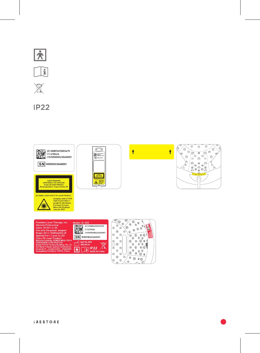 Labels on package and device are in compliance with IEC 60825-1 Standard: