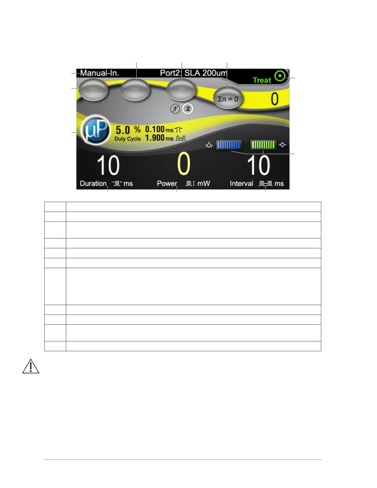 WARNING: Except during actual treatment, the laser must always be in Standby mode.