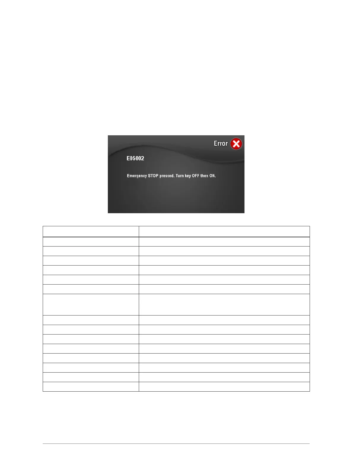Systemerrorsdisplayamessagewindow(examplebelow).Whenthisscreenisdisplayed,thesystem