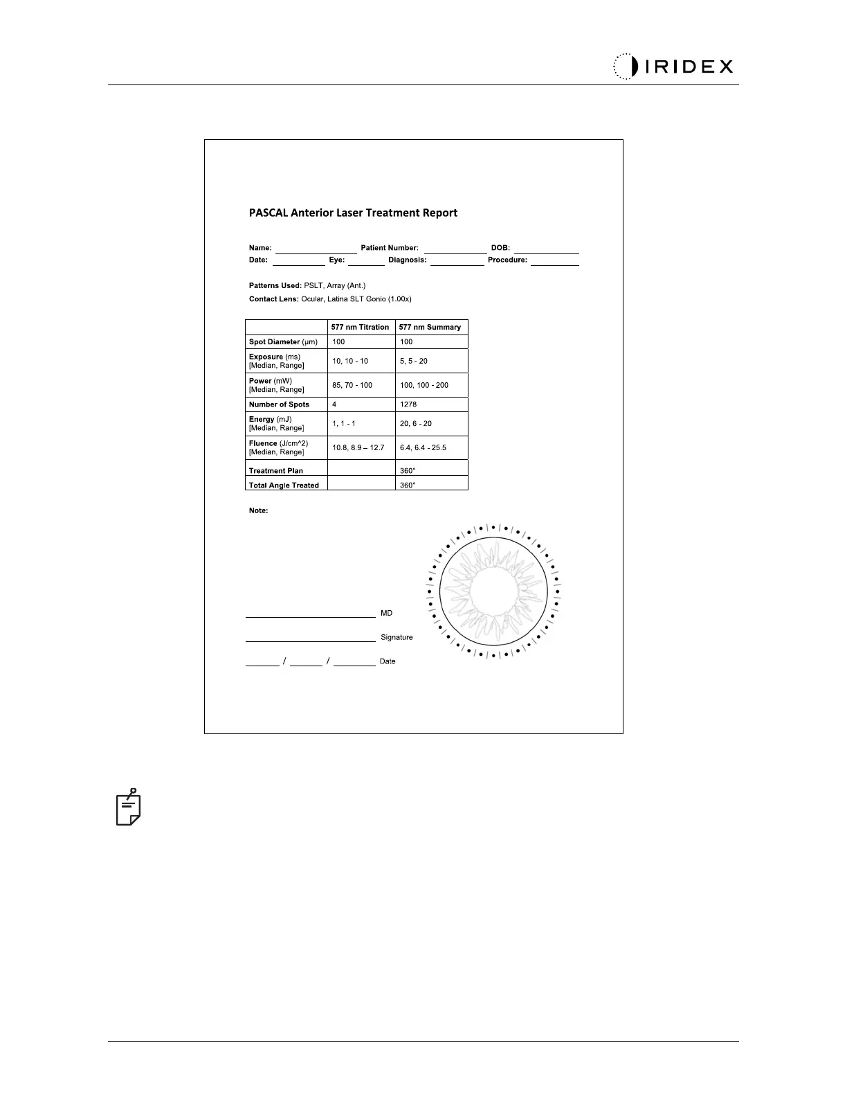 The graphical depiction of the area treated on the Anterior Laser Treatment Report