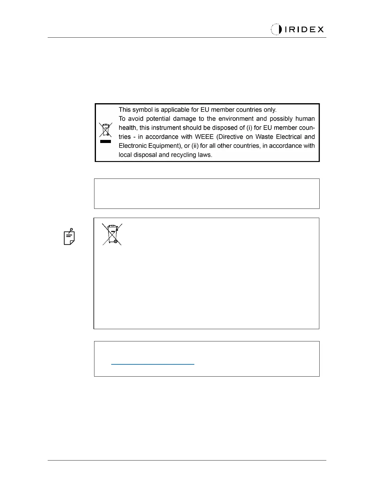 dispose batteries, contact your dealer or Iridex listed on the back cover.