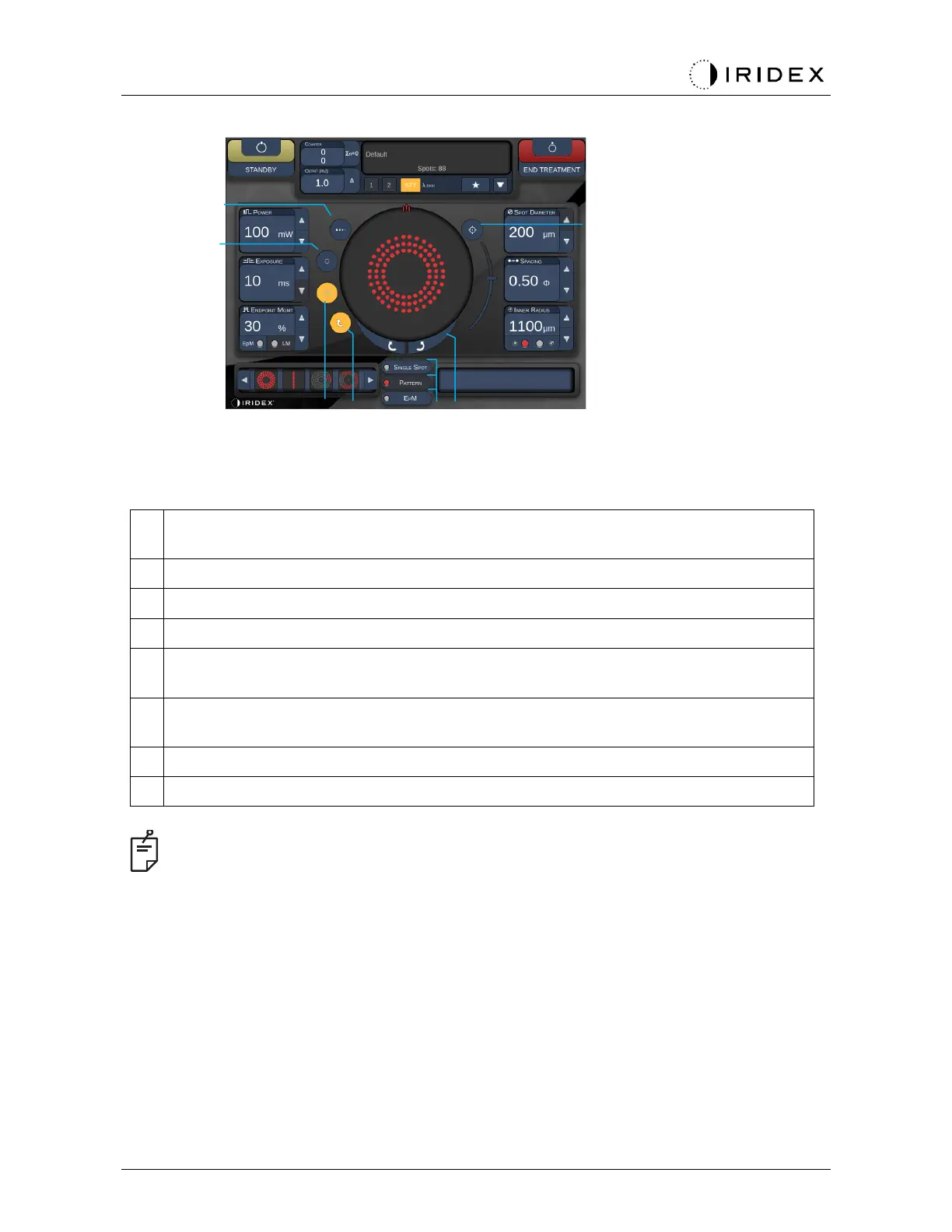 <Titrate> - press to switch to single spot to perform test burns, adjustable up to 4