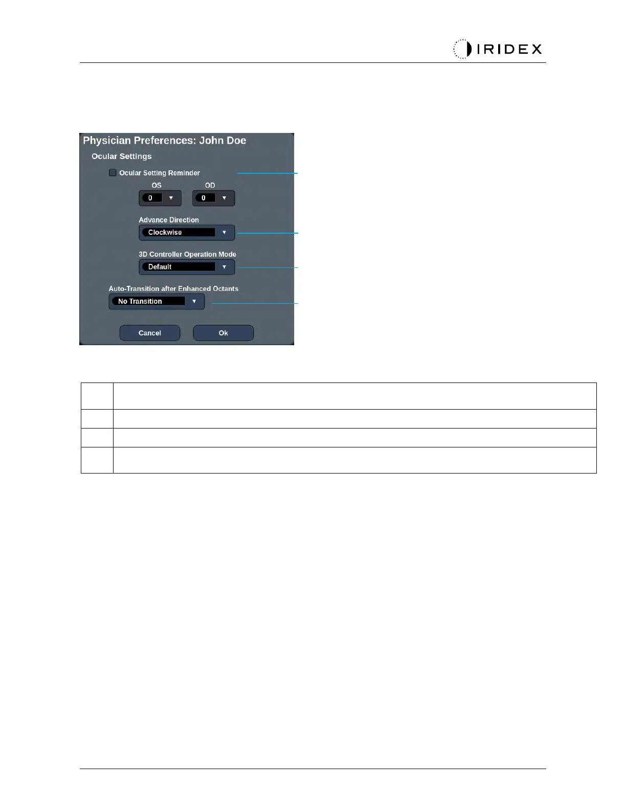 Iridex PASCAL Synthesis - Edit Physician Preferences> Window