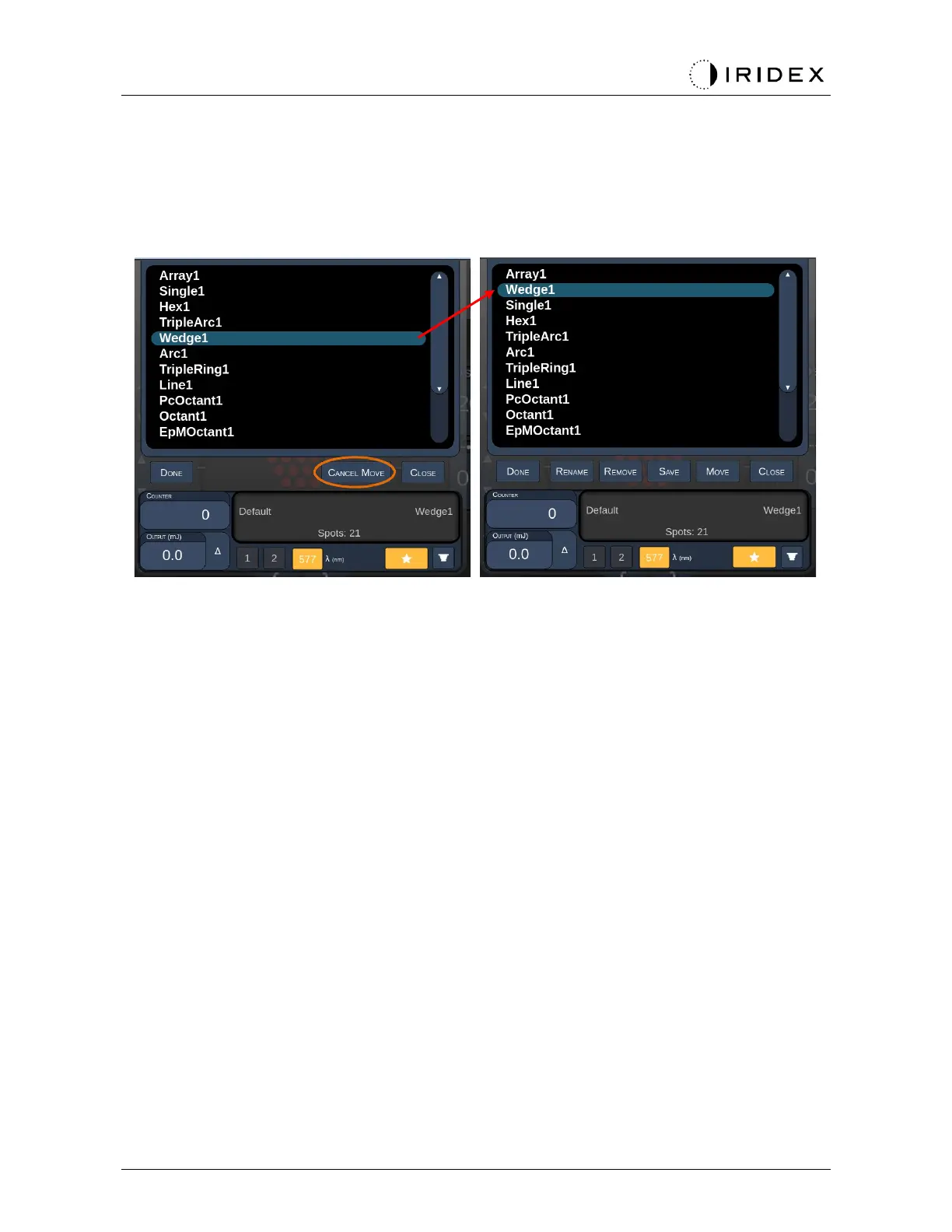 For example, select “Single 1”. The software will move “Wedge 1” to the position 2.