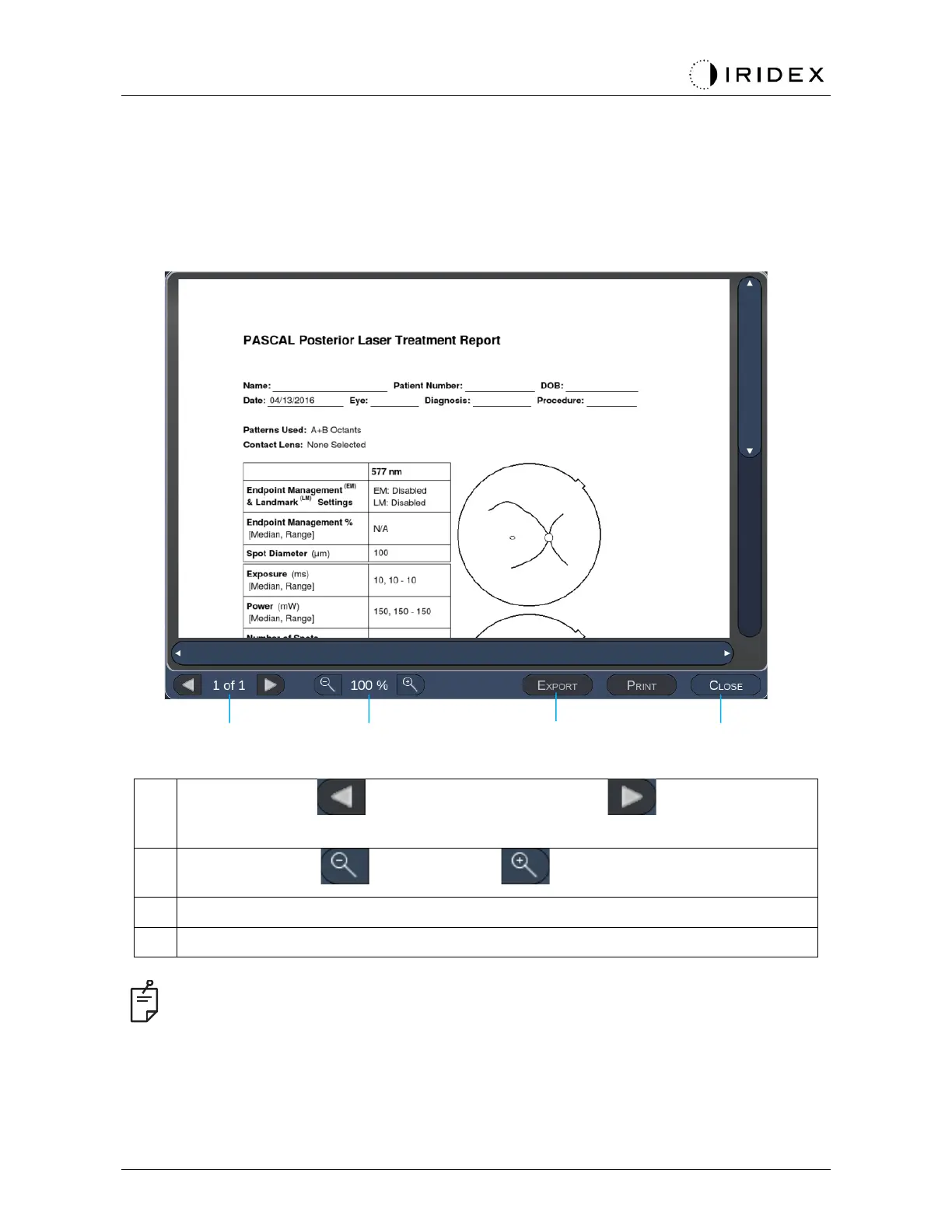 <CLOSE> - press to close the Treatment Report Window to go to Home Screen