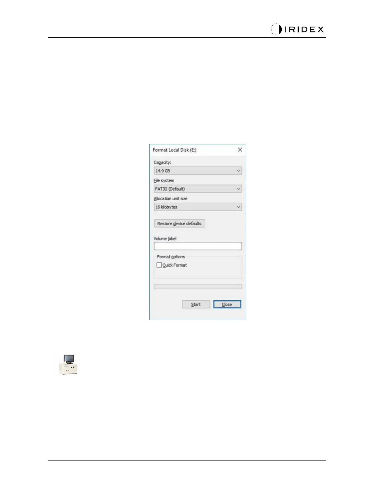 Select FAT32 for File system. Uncheck the Quick Format checkbox. Click Start
