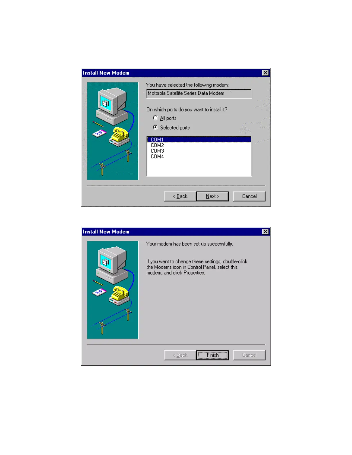 10. Click Finish to close the Install New Modem window.