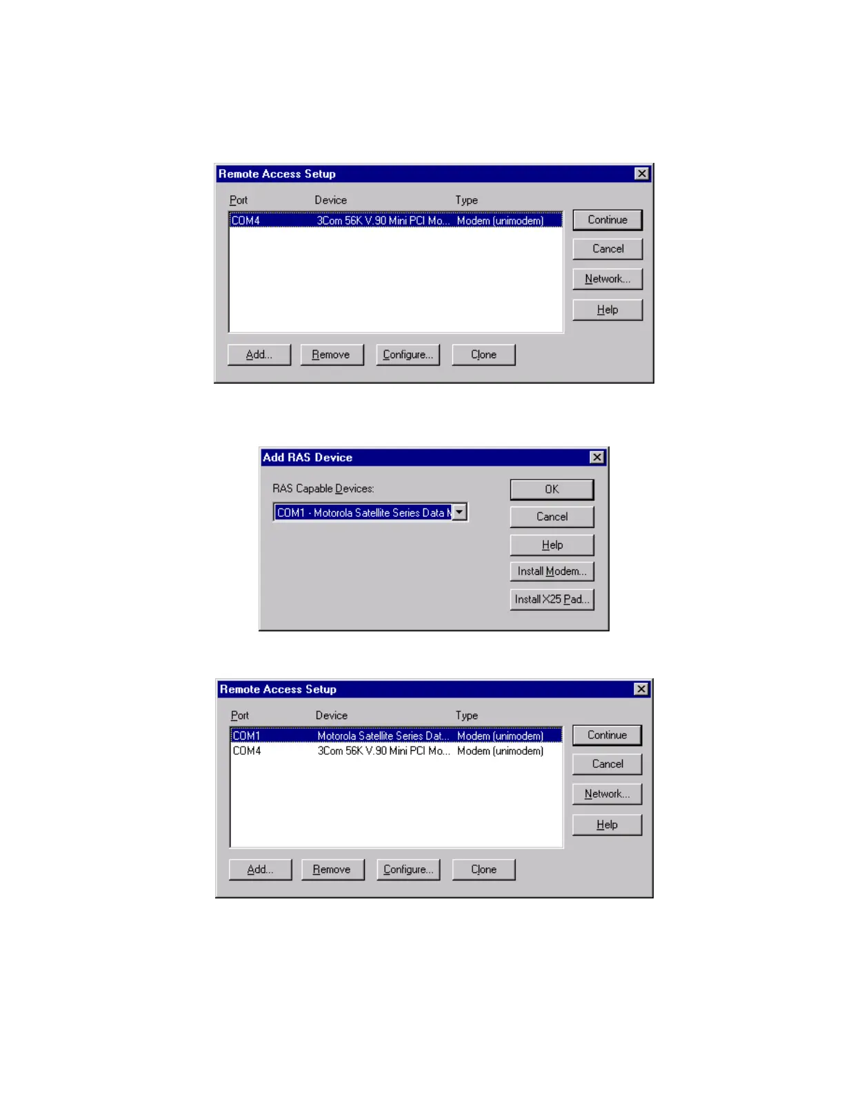 14. Select the Motorola Satellite Series Data Modem from the list of RAS capable devices. Click